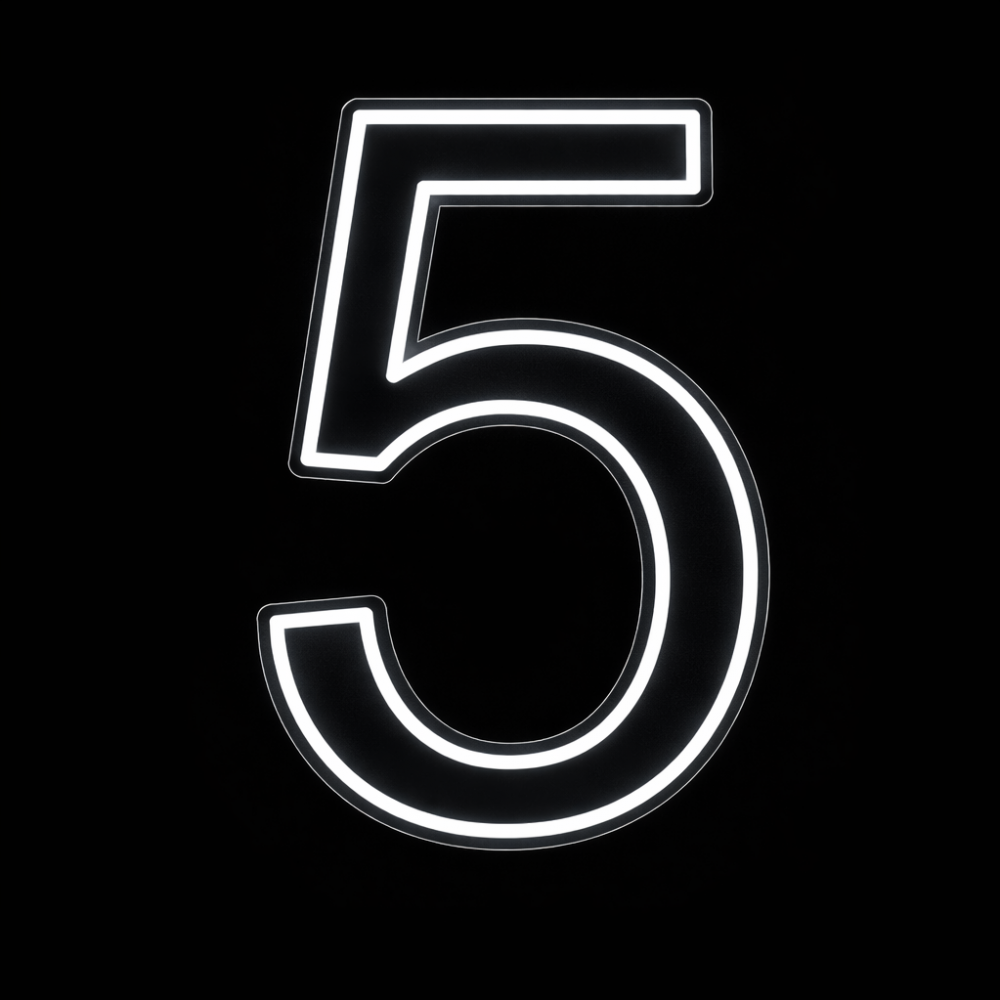 Neon Sign Number 5 (50cm Tall White)