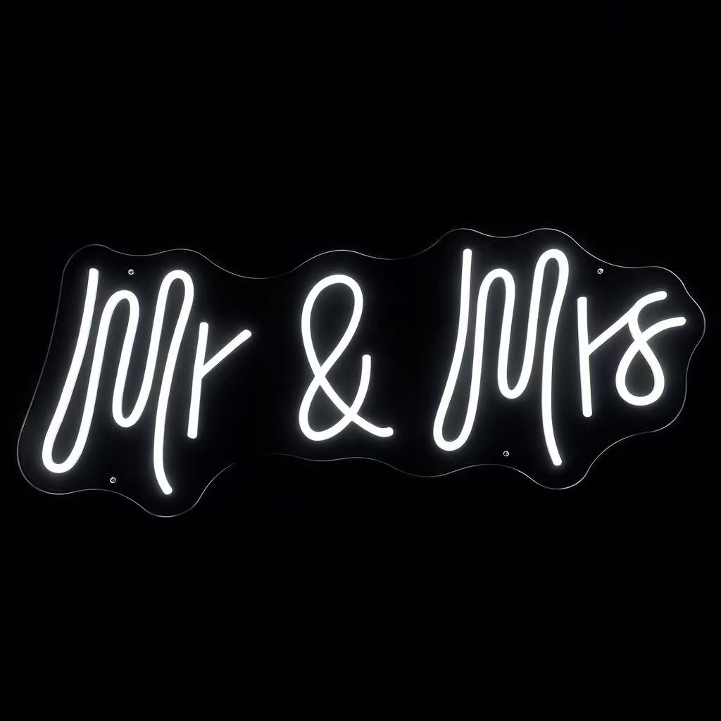 Neon Sign Mr and Mrs ( 90cm*34cm Bright White)