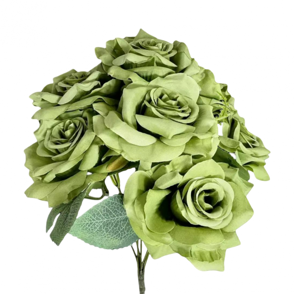 Artificial Flower Rose Bunch Dark Green (7PCS)